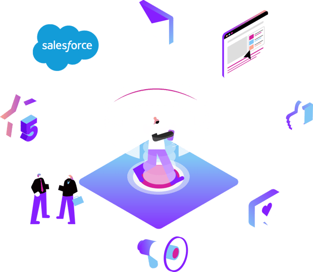 • Déployer et automatiser les notifications à grande échelle : déclenchez des bots ou différentes interactions en fonction des conditions, à l'aide des outils de workflow Salesforce recommandés.